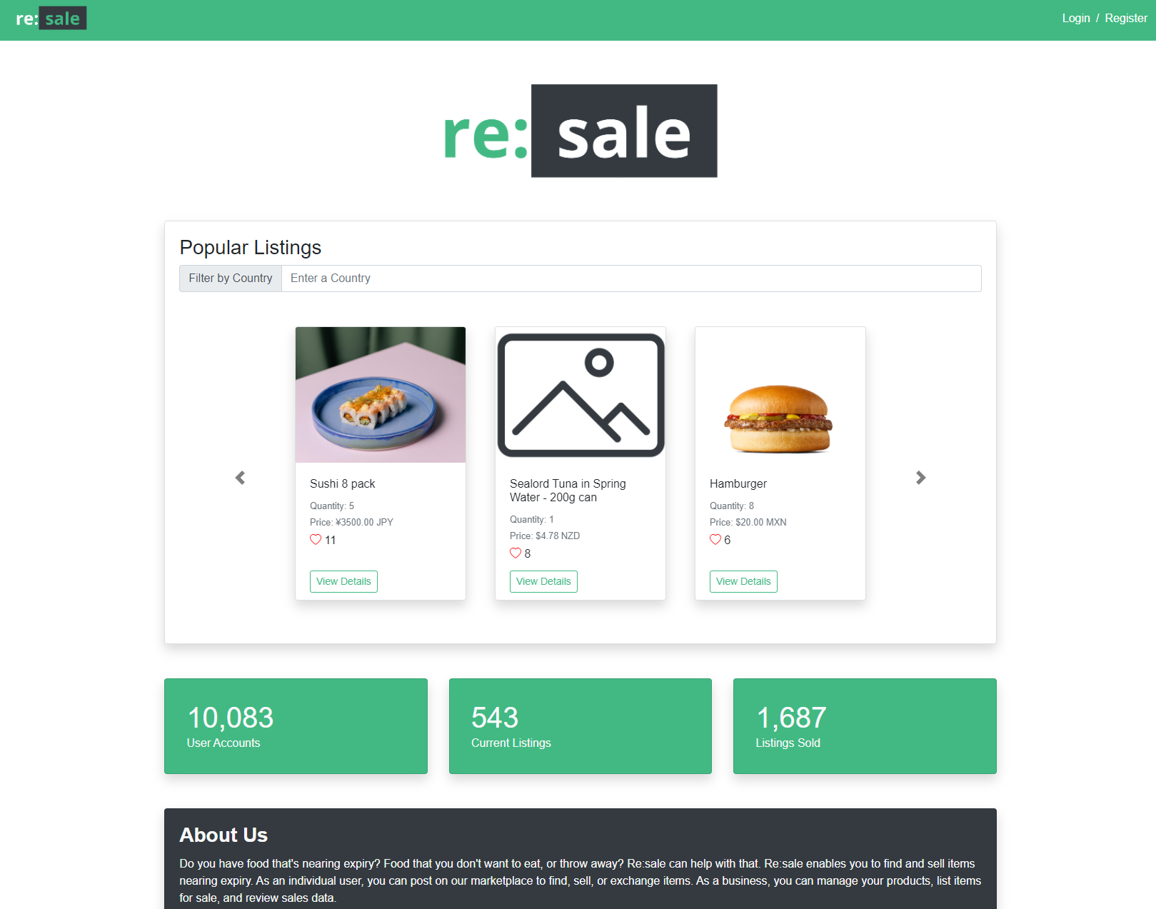 Re: Sale is a food waste management app that allows businesses to sell off food stock that is close to its best before date for a cheaper price to its consumers. This app also hosts a community marketplace where users can post cards requesting/selling/wanting to trade for items.